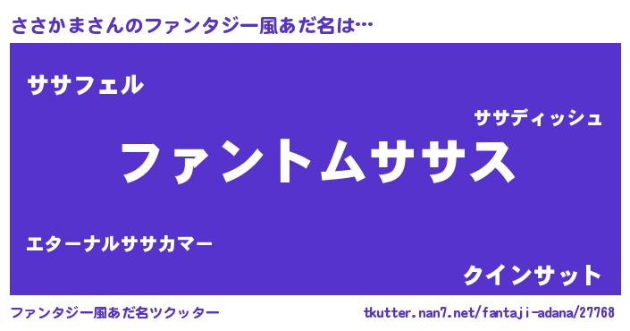 | ヒーロー風カッコイイあだ名 | 『天弓騎士ササ』『スーパーササカマ』 |