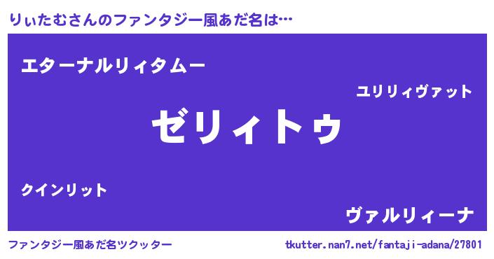 | 女子向けラノベタイトル風あだ名 | 『りぃたむアンティーク』 |