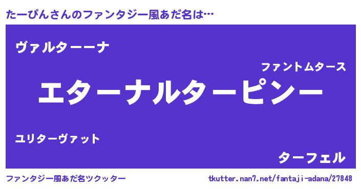 | 女子向けラノベタイトル風あだ名 | 『たーぴんの雑貨屋さん』 |