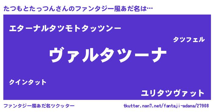 | 女子向けラノベタイトル風あだ名 | 『乙女ゲームの破滅フラグしかない悪役たつもとたっつんに転生してしまった…』 |