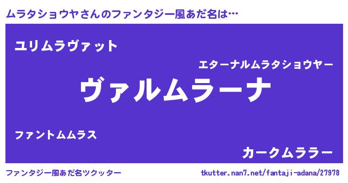 | 男性向けラノベタイトル風あだ名 | 『魔弾の王とムラタショウヤ』 |