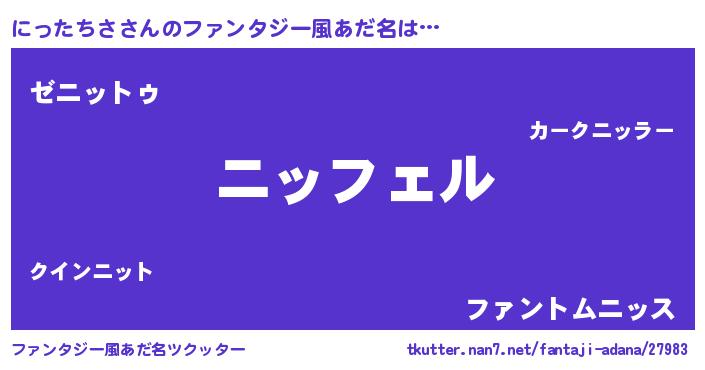 | 男性向けラノベタイトル風あだ名 | 『ニッタチサアートオンライン』 |
