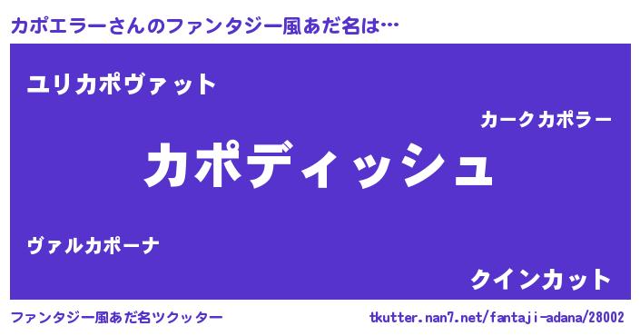 | 胡散臭い通販商品みたいなあだ名 | 『絶対に幸福をもたらす水素水…その名も「カポエラー」』 |