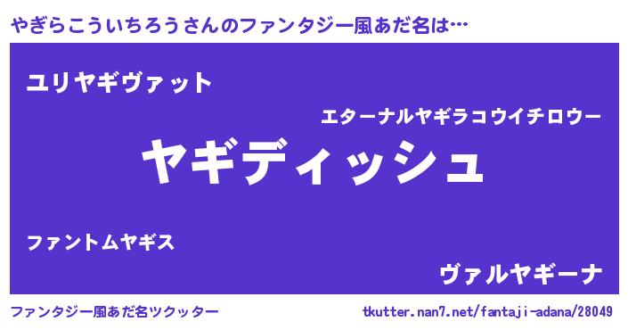 | 男性向けラノベタイトル風あだ名 | 『やぎらこういちろうという概念が存在しない退屈な世界 』 |