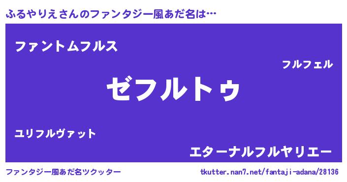 | 男性向けラノベタイトル風あだ名 | 『Re:ふるやりえから始める異世界生活』 |