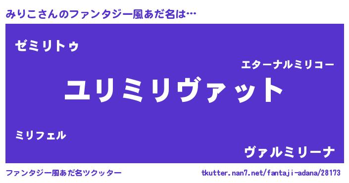 | ヒーロー風カッコイイあだ名 | 『超時空戦士ミリコ』『仮面ミリダー』 |