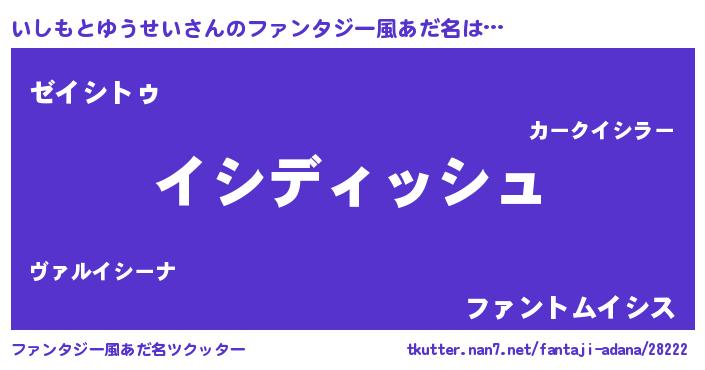 | ヘコむあだ名 | 『いしもとゆうせい(笑)』『いしお』 |