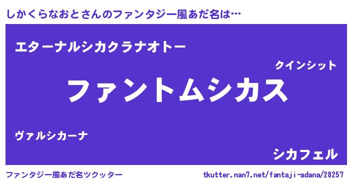 | 女子向けラノベタイトル風あだ名 | 『しかくらなおと様がみてる』 |