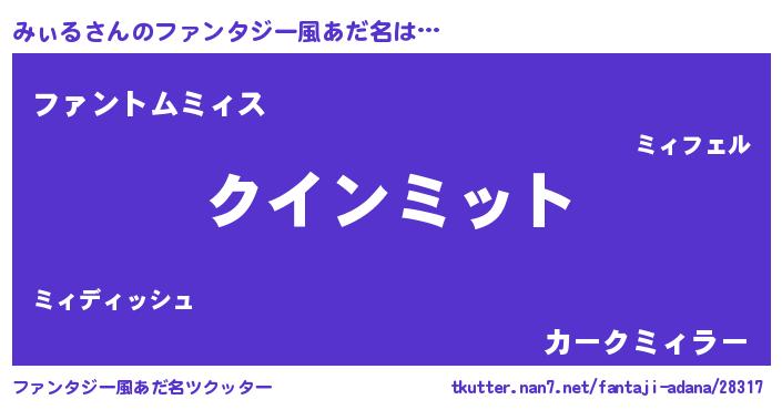 | 自動車の名前っぽいあだ名 | 『ミンR』『ミルトィパン』『デミミ』 |