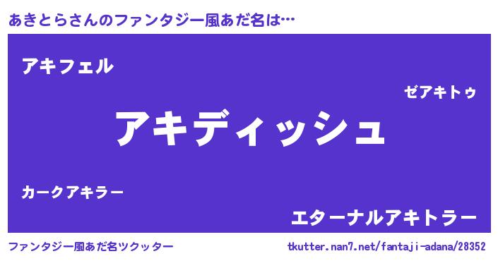 | ヘコむあだ名 | 『あきとら(小並感)』『あきっふぃ~』 |