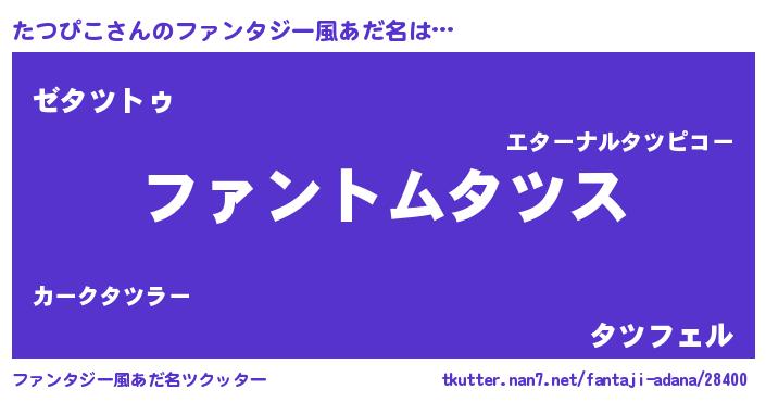 | 男性向けラノベタイトル風あだ名 | 『たつぴこの嫁は女の子じゃないと思った?』 |