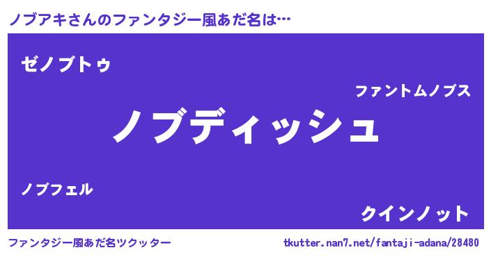 | 胡散臭い通販商品みたいなあだ名 | 『来世でも幸せになれる健康食品…その名も「ノブアキ」』 |