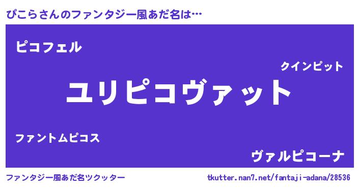 | 男性向けラノベタイトル風あだ名 | 『ピコラスレイヤー』『魔弾の王とぴこら』 |