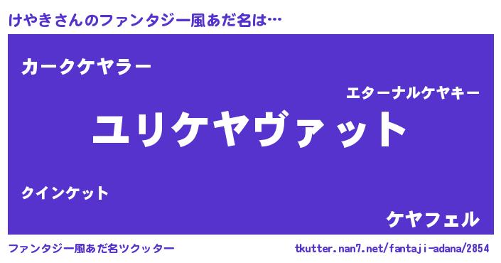 | 男性向けラノベタイトル風あだ名 | 『けやき~年齢イコール彼女いない歴の魔法使い~』 |
