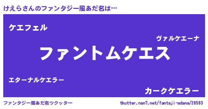| 女子向けラノベタイトル風あだ名 | 『けえらの卵を拾いまして』 |