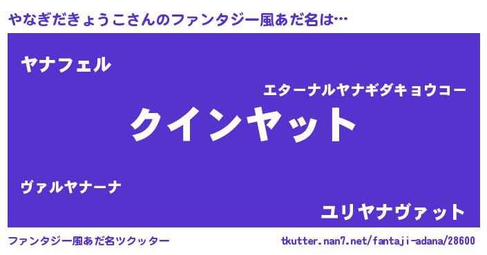 | 意味不明あだ名 | 『眠気覚ましガムやなぎだきょうこ味』 |