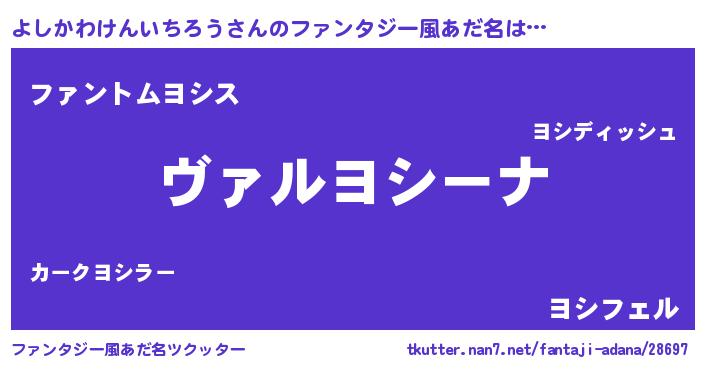 | 男性向けラノベタイトル風あだ名 | 『この素晴らしい世界によしかわけんいちろうを!』 |