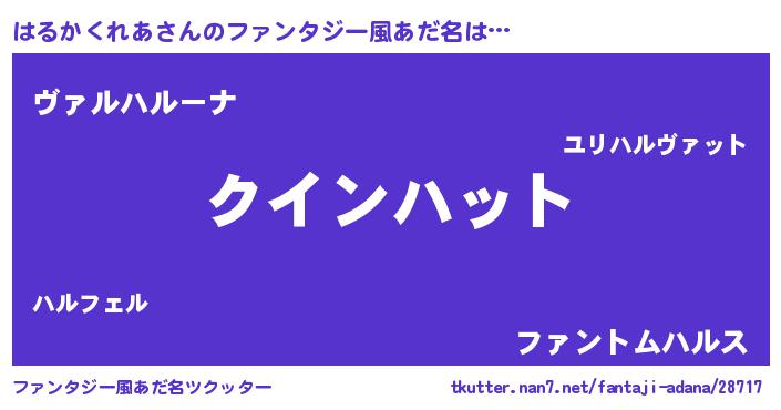 | 女子向けラノベタイトル風あだ名 | 『はるかくれあ恋絵巻』 |
