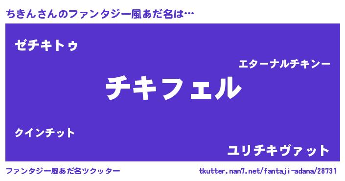 ちきんさんのファンタジー風あだ名をツクッター!