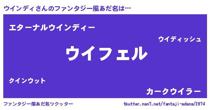 | 男性向けラノベタイトル風あだ名 | 『ウインディの憂鬱』『緋弾のウインディ』 |