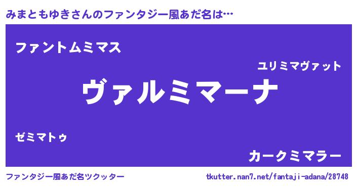 | 男性向けラノベタイトル風あだ名 | 『魔弾の王とみまともゆき』 |