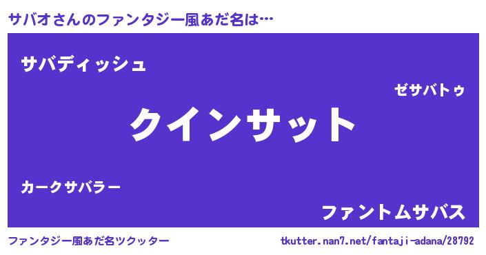 | 女子向けラノベタイトル風あだ名 | 『サバオ恋絵巻』『サバオの契約王妃』 |