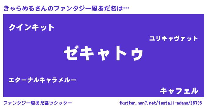 | 意味不明あだ名 | 『自称きゃらめる』『ペロリンきゃらめる』 |