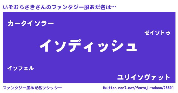 | ヒーロー風カッコイイあだ名 | 『ネオイソムラサキ』『仮面イソダー』 |