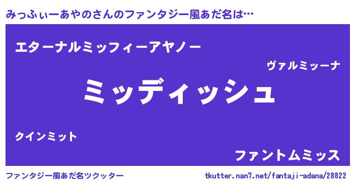 | 意味不明あだ名 | 『永久保存みっふぃーあやの』 |
