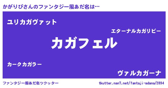 | ヒーロー風カッコイイあだ名 | 『スーパーカガリビ』『仮面カガダー』 |