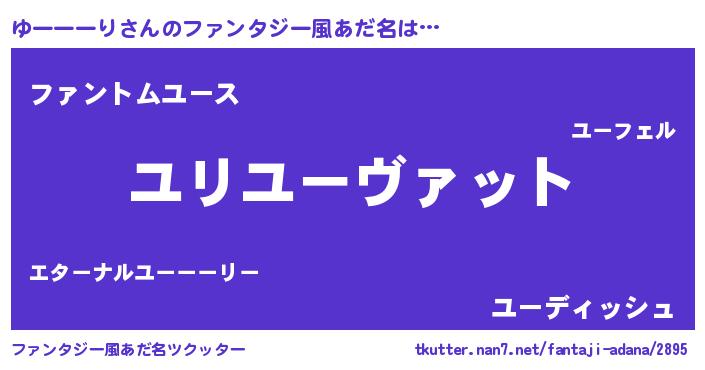 | 男性向けラノベタイトル風あだ名 | 『ゆーーーり~年齢イコール彼女いない歴の魔法使い~』 |