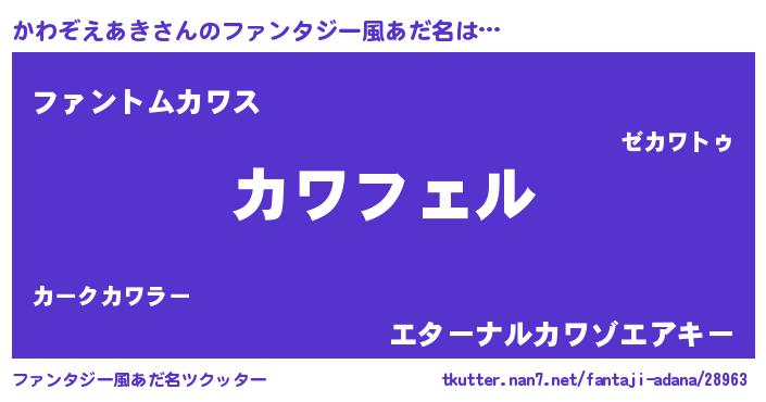 | ヒーロー風カッコイイあだ名 | 『スーパーカワゾエアキ』『暗黒騎士カワ』 |