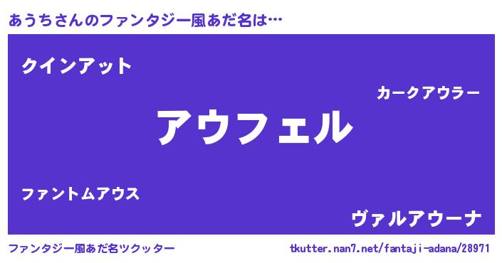 | 男性向けラノベタイトル風あだ名 | 『あうちの憂鬱』『魔弾の王とあうち』 |