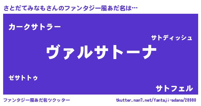 | 意味不明あだ名 | 『住所不定無職さとだてみなも(41歳)』 |