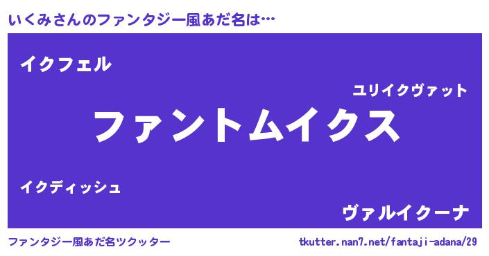 | 女子向けラノベタイトル風あだ名 | 『いくみ様がみてる』『いくみの契約王妃』 |