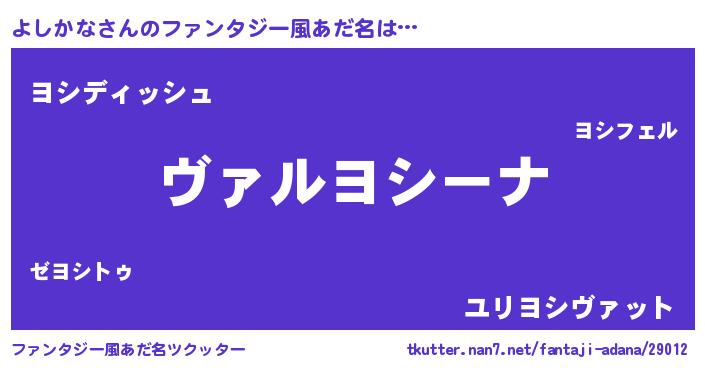 | 男性向けラノベタイトル風あだ名 | 『魔弾の王とよしかな』『よしかなの憂鬱』 |