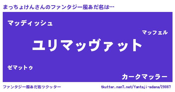 | 男性向けラノベタイトル風あだ名 | 『転生したらまっちょけんだった件』 |