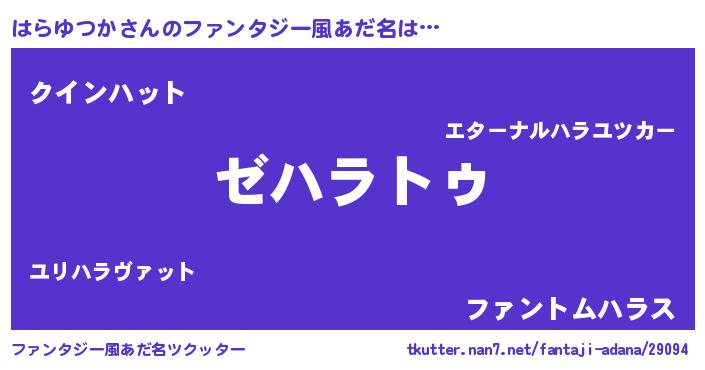 | 女子向けラノベタイトル風あだ名 | 『はらゆつかなんてお断りですっ。』 |