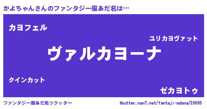 | 男性向けラノベタイトル風あだ名 | 『この素晴らしい世界にかよちゃんを!』 |