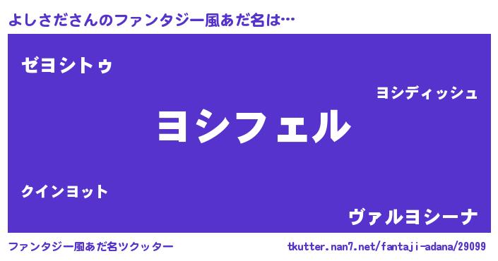 | ヒーロー風カッコイイあだ名 | 『スーパーヨシサダ』『仮面ヨシダー』 |
