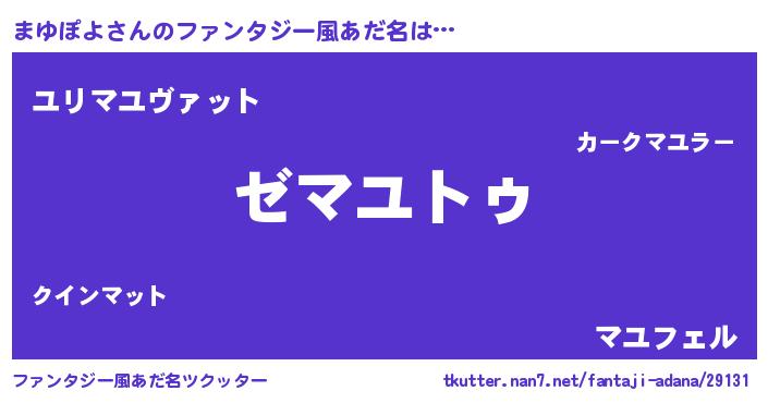 | 男性向けラノベタイトル風あだ名 | 『Re:まゆぽよから始める異世界生活』 |