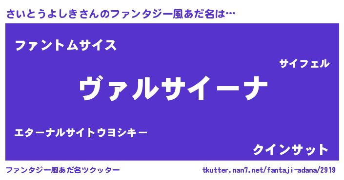 | ポケモン風あだ名 | 『サーイイ』『ヒサイトウヨシキ』 |