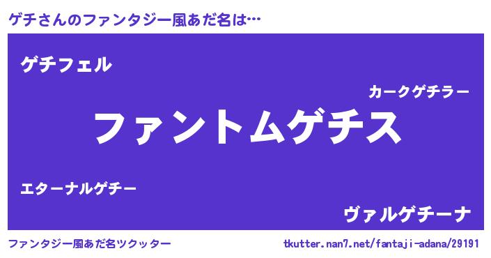 | 女子向けラノベタイトル風あだ名 | 『ゲチ様がみてる』『ゲチ姫と円卓の騎士』 |