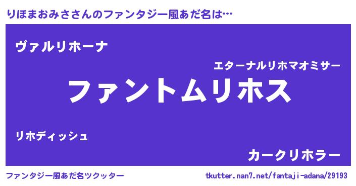 | 男性向けラノベタイトル風あだ名 | 『ダンジョンにりほまおみさを求めるのは間違っているだろうか』 |