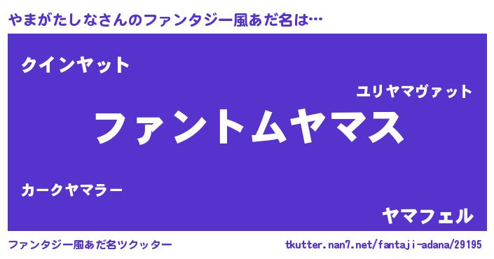 | 男性向けラノベタイトル風あだ名 | 『やまがたしなの嫁は女の子じゃないと思った?』 |