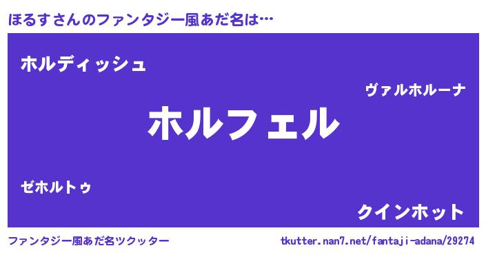 | ヘコむあだ名 | 『ほるっふぃ~』『ほるす(苦笑)』 |
