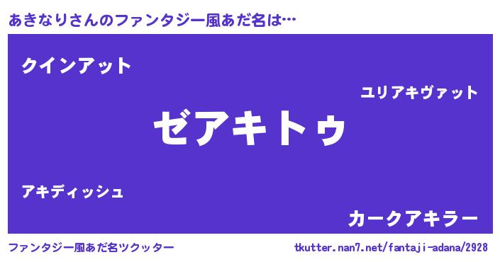 | 男性向けラノベタイトル風あだ名 | 『Re:あきなりから始める異世界生活』 |