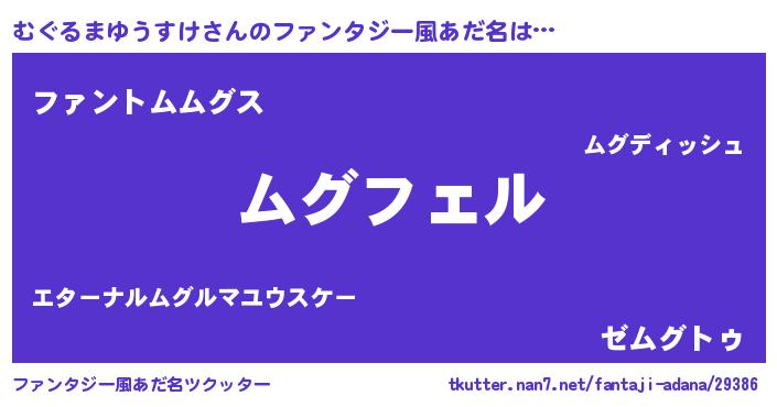 | 胡散臭い通販商品みたいなあだ名 | 『必ず成功するブレスレット…その名も「むぐるまゆうすけ」』 |