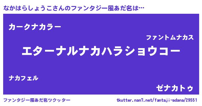 | 意味不明あだ名 | 『なかはらしょうこフォーエバー』 |