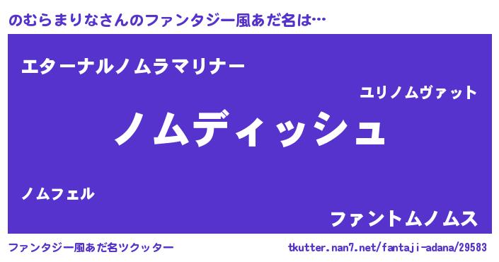 | ヒーロー風カッコイイあだ名 | 『ネオノムラマリナ』『幻影騎士ノム』 |
